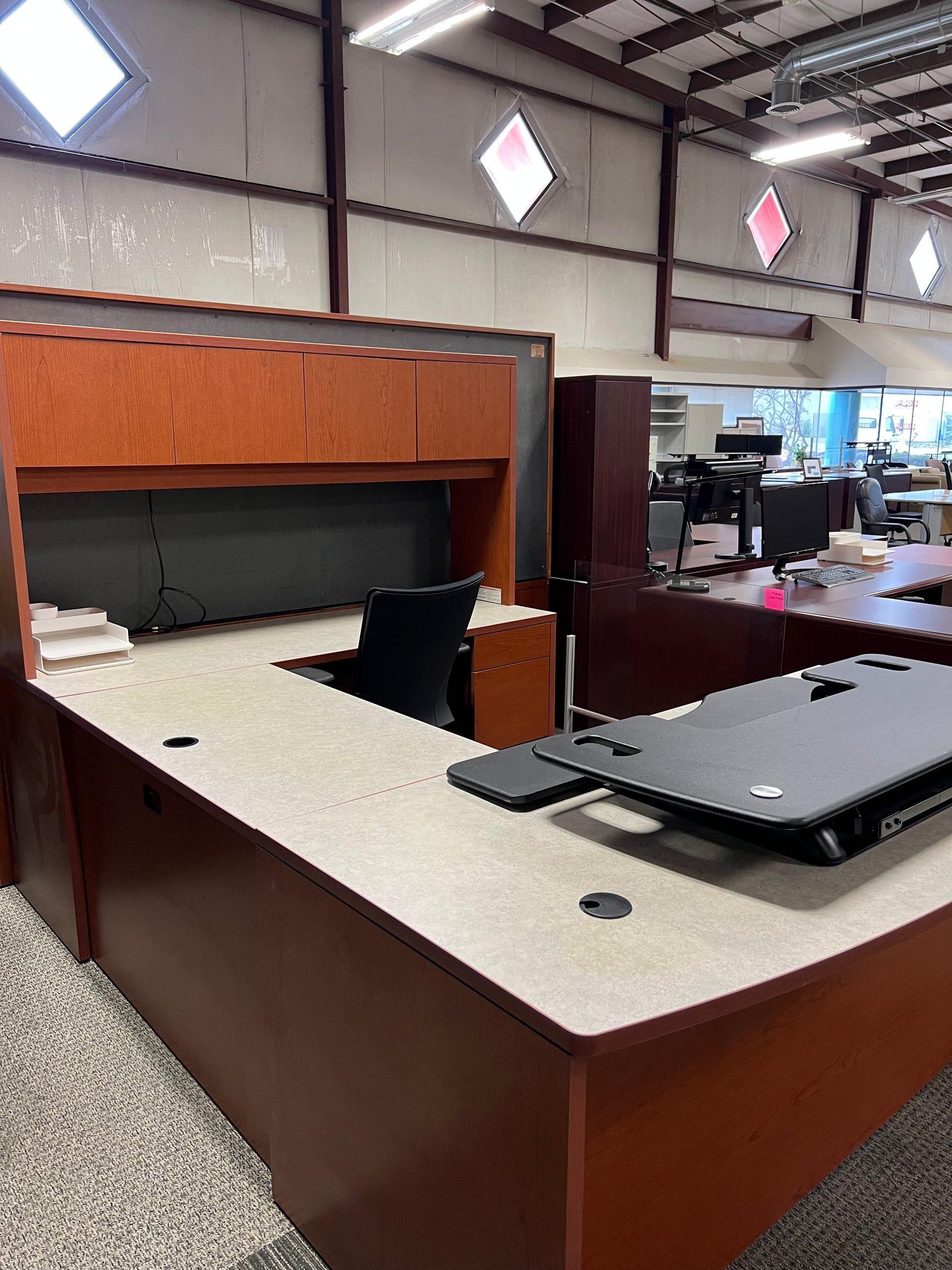 Enhance your workspace with the HON U-shape desk featuring an attached hutch designed to maximize organization and efficiency. The integrated hutch provides secure storage with bolt-in stability, ensuring your essentials stay neatly accessible while maintaining a sleek, professional look. Ideal for busy offices, this desk combines durability with spacious design to support your productivity every day.