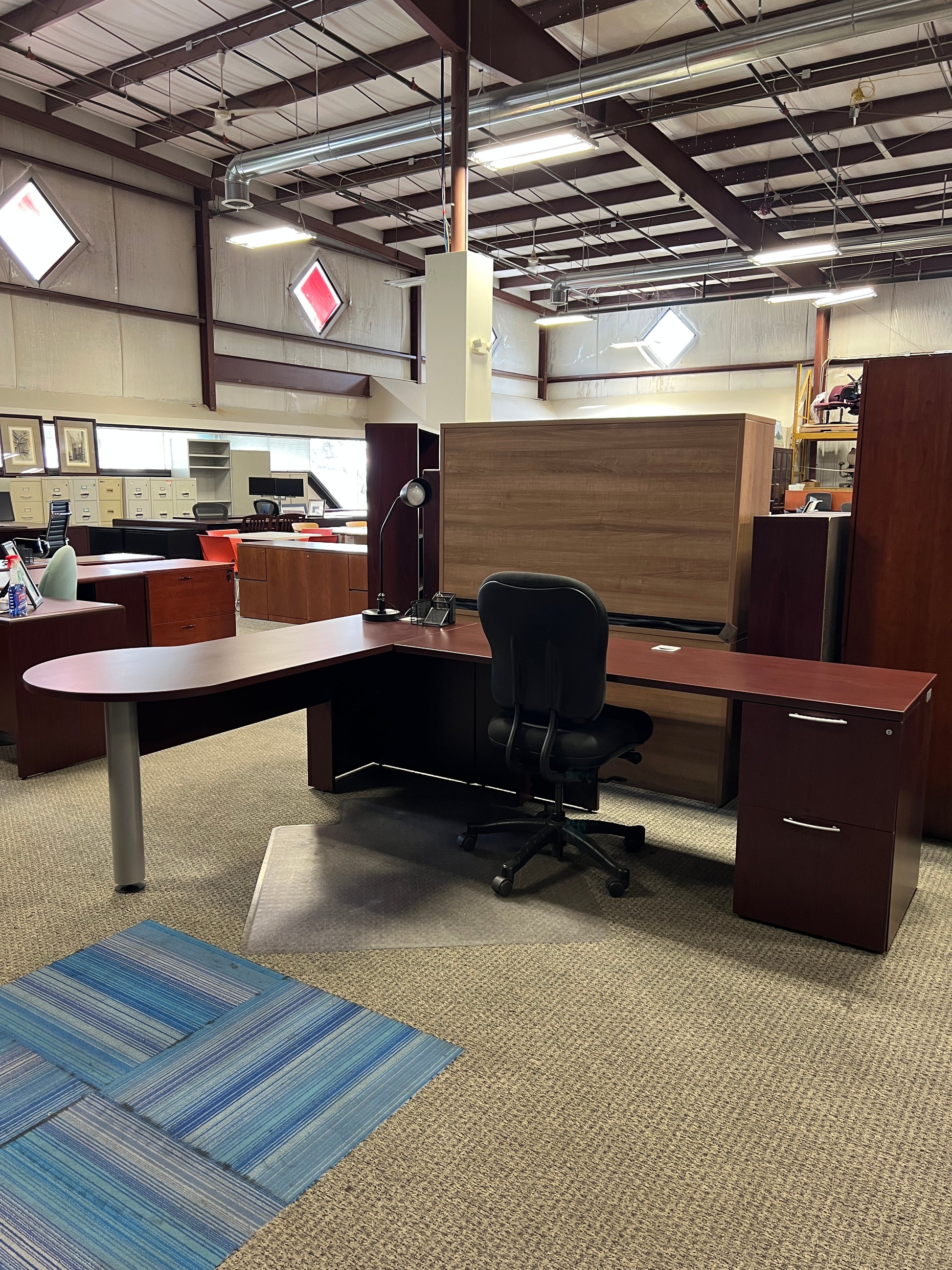 This L-shaped desk features a practical round return laminate design that maximizes workspace while enhancing comfort and accessibility. Ideal for professionals seeking an efficient layout, it provides ample surface area for multitasking, combining durability with a clean, modern aesthetic suitable for any office environment.