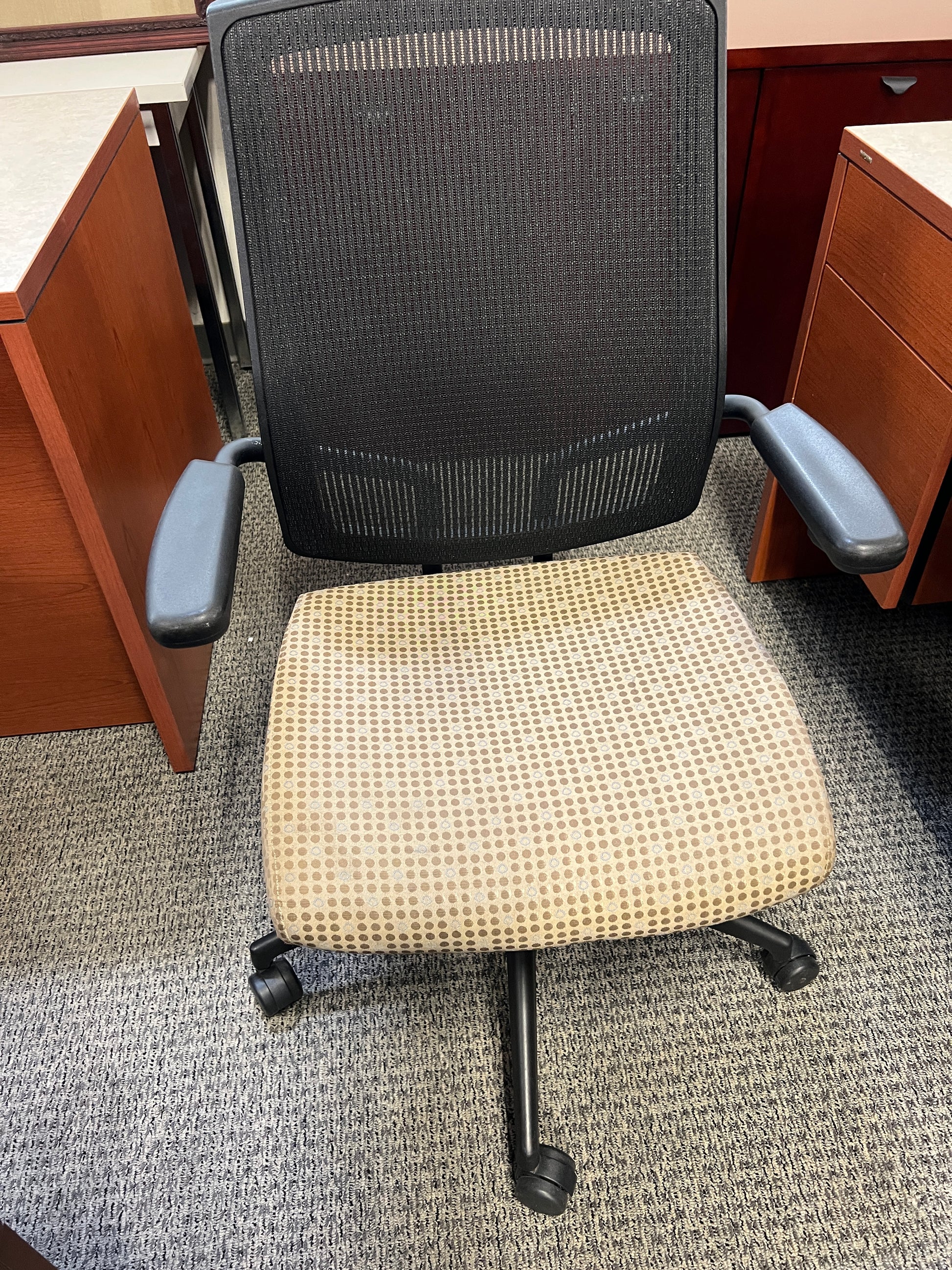 This mesh back task chair features a lightweight fabric seat combined with a breathable mesh back, promoting airflow for enhanced comfort during long work hours.